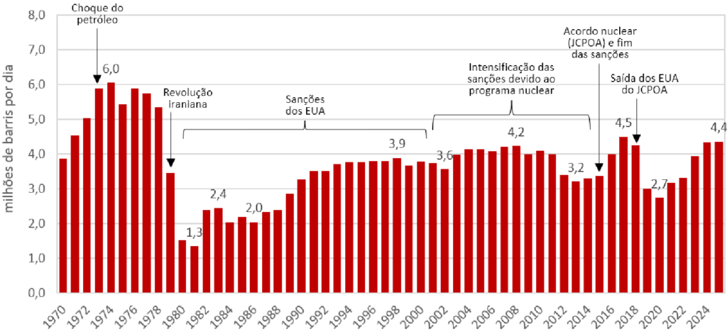 Na Figura 1, é apresentado o histórico de produção do Irã desde a década de 1970.