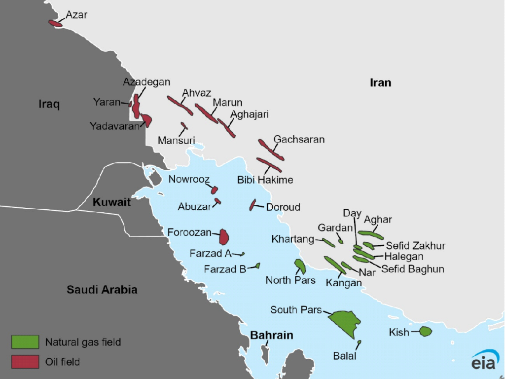 Hoje, o Irã figura como o quinto maior produtor mundial de petróleo, detém a terceira maior reserva global de petróleo, estimada em 208,6 bilhões de barris, e conta com a segunda maior reserva de gás natural, com aproximadamente 34 trilhões de metros cúbicos. No consumo interno, é o décimo maior consumidor mundial de petróleo e o segundo do Oriente Médio, atrás apenas da Arábia Saudita. Sua capacidade total de carregamento de petróleo para exportação ultrapassa 8,0 milhões de bpd, e o país investiu recentemente em novas infraestruturas, como o terminal de Jask (que entrou em operação em 2024), localizado a leste do Estreito de Ormuz, com o objetivo de reduzir riscos logísticos associados ao Golfo Pérsico.